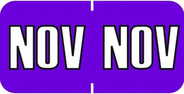 These Sycom SYET Series Compatible "Nov" Month Labels are ideal for coding folders to indicate when a file was created or to signal when the file should be moved to inactive storage. These "Nov" labels are solid Purple labels with "Nov" printed in White.