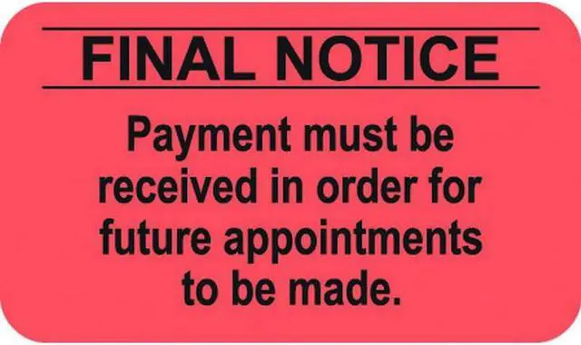Billing Collection Labels, Fl Red - FINAL NOTICE, 1-1/2" W X 7/8" H (Roll of 250)