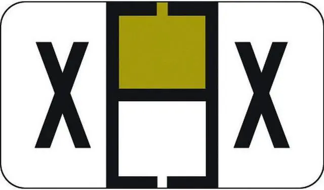 These Traco TRAM Series Compatible "X" Polylaminated stock labels with a Black letter "X" printed on a White, and Gold background. Label Size: 1-5/8" W x 15/16" H, Before Folding.