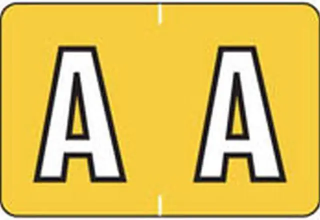 These Colwell Jewel Tone Series Compatible Alpha "A", Polylaminated Labels with a White"A" printed on a Yellow background.