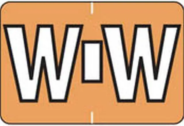 These Colwell Jewel Tone Series Compatible Alpha "W", Polylaminated Labels with a White"W" printed on a Orange background. Label Size: 1 1/2" W x 1" H, Before Folding.