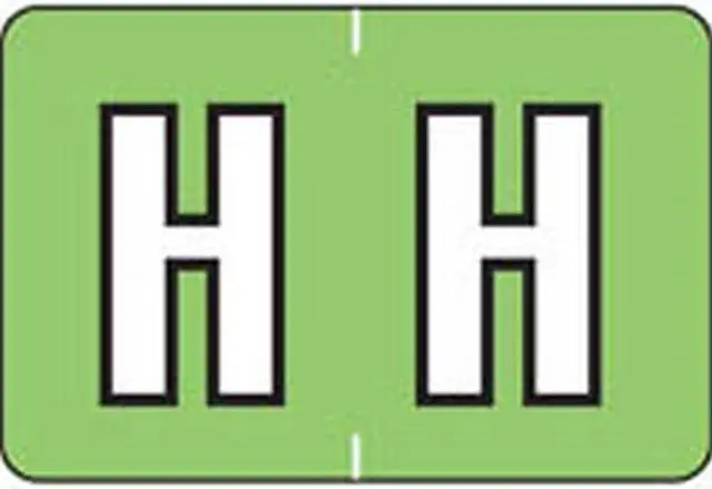 These Colwell Jewel Tone Series Compatible Alpha "H", Polylaminated Labels with a White"H" printed on a Light Green background. Label Size: 1 1/2" W x 1" H, Before Folding.