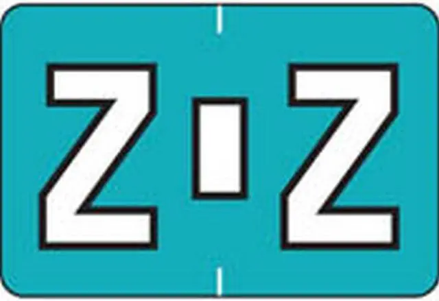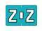 These Colwell Jewel Tone Series Compatible Alpha "Z", Polylaminated Labels with a White"Z" printed on a Turquoise background. Label Size: 1 1/2" W x 1" H, Before Folding.