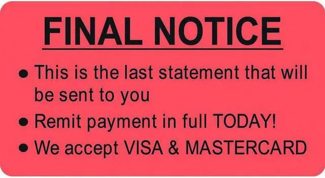 Billing Collection Labels, Fl Red - FINAL NOTICE, 3-1/4" W X 1-3/4" H (Roll of 250)