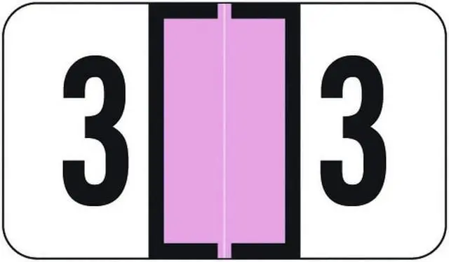 These Safeguard SGNM Compatible Numeric "3" Labels feature a wrap-around White, and Pink bar with a Black "3". Label Size: 1-5/8" W x 15/16" H, Before Folding. Laminated for protection.