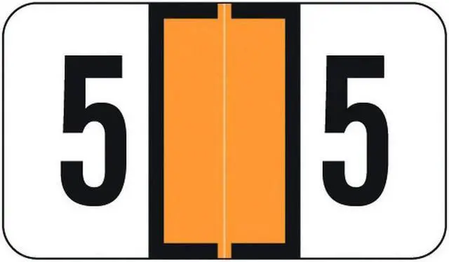These Safeguard SGNM Compatible Numeric "5" Labels feature a wrap-around White, and Fluorescent Orange, with a Black "5". Label Size: 1-5/8" W x 15/16" H, Before Folding. Laminated for protection.