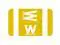 These Smead ACC/ACCS Series Compatible "W" Polylaminated Labels with a White "W" printed on a Yellow background. Label Size: 1-5/8" W x 1" H, Before Folding.