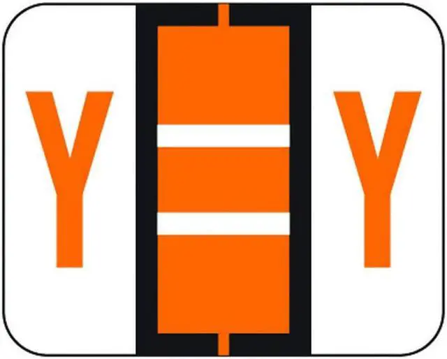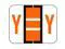 These File Doctor FDAV Series Compatible Letter "Y" labels feature a wrap-around Black bar printed on a Orange, and White background. Vinyl Stock, Label Size: 1-1/4" W x 1" H, Before Folding.