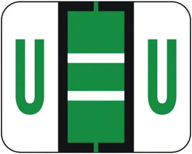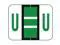 These File Doctor FDAV Series Compatible Letter "U" labels feature a wrap-around Black bar printed on a Dark Green, and White background. Vinyl Stock, Label Size: 1-1/4" W x 1" H, Before Folding.