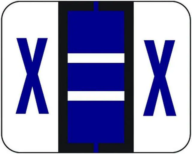 These File Doctor FDAV Series Compatible Letter "X" labels feature a wrap-around Black bar printed on a Dark Blue, and White background. Vinyl Stock, Label Size: 1-1/4" W x 1" H, Before Folding.