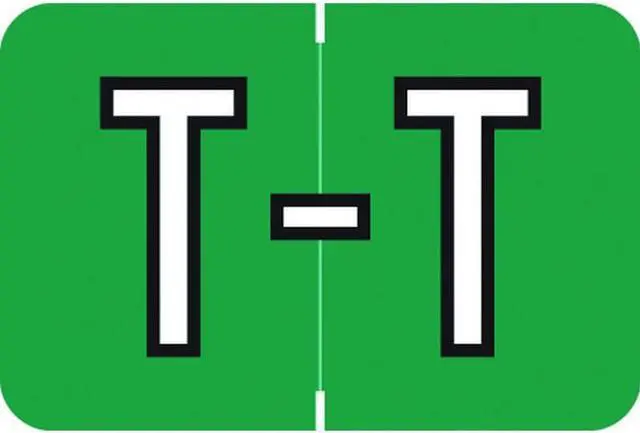 These Barkley ABKM Compatible "T" Labels features a White "T" outlined in Black and printed on a Dark Green background. Label Size: 1-1/2" W X 1" H, Before Folding. Laminated for Protection
