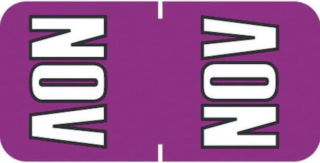 These Sycom SYTT Series Compatible "Nov" Top tab Month Labels are ideal for coding folders to indicate when a file was created or to signal when the file should be moved to inactive storage. These "Nov" labels are solid Purple labels with "Nov" printed in White.
