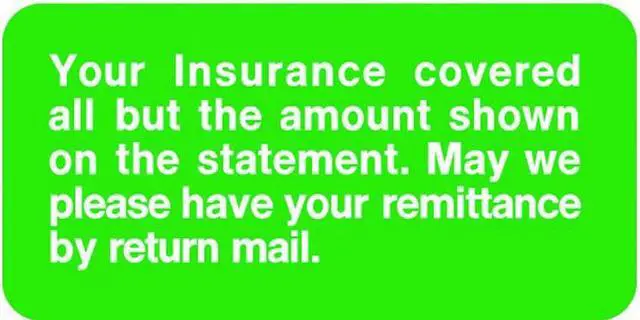 Insurance Labels, Your insurance covered all but the amount shown on the statement. - Green 2" W X 1" H (Pack of 252)