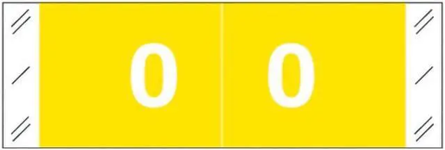 These Tabbies 11850 Compatible Numeric "0" Labels feature a wrap-around Yellow bar with a White "0". Label Size: 1-1/2" W x 1/2" H, Before Folding. Laminated for protection.