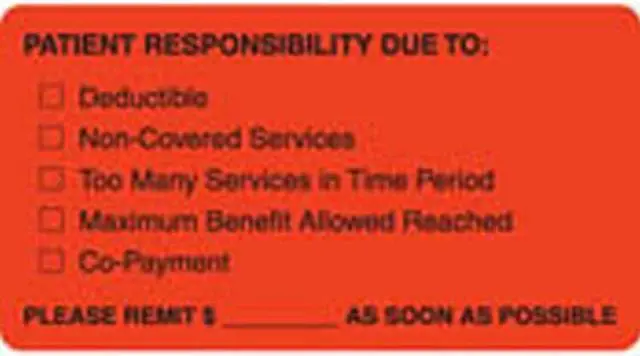 Insurance Labels, Patient Responsibility Due To:, Fluorescent Red, 3-1/4" x 1-3/4", ( Roll of 250)