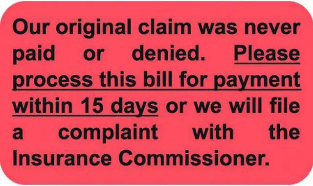 Insurance Labels, Please process this bill for payment within 15 days, Fluorescent Red, 1-1/2" W x 7/8" H (Roll of 250)