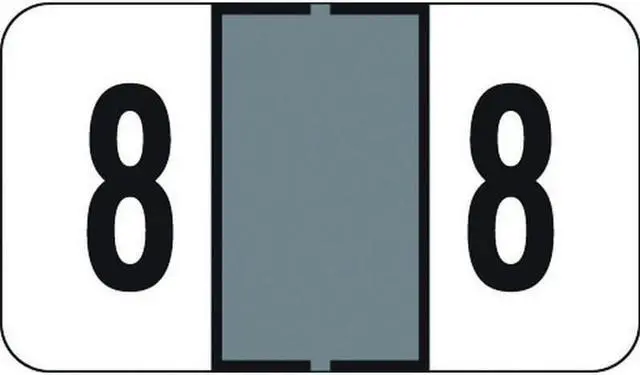 These Traco TRNM Compatible "8" Numeric Labels feature a White, and Gray bar with a Black "8". Label Size: 1-5/8" W x 15/16" H, Before Folding. - Laminated for protections