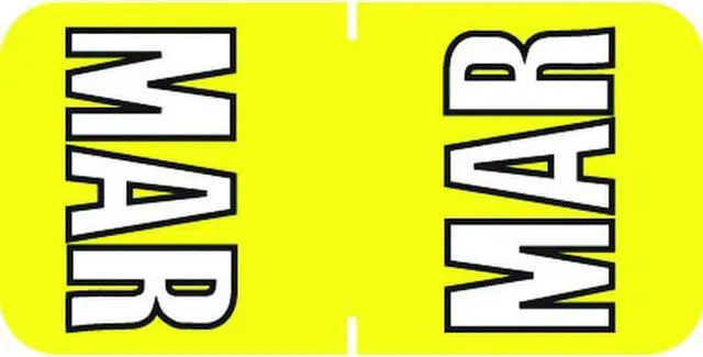 These Sycom SYTT Series Compatible "Mar" Top tab Month Labels are ideal for coding folders to indicate when a file was created or to signal when the file should be moved to inactive storage. These "Mar" labels are solid Yellow labels with "Mar" printed in White.