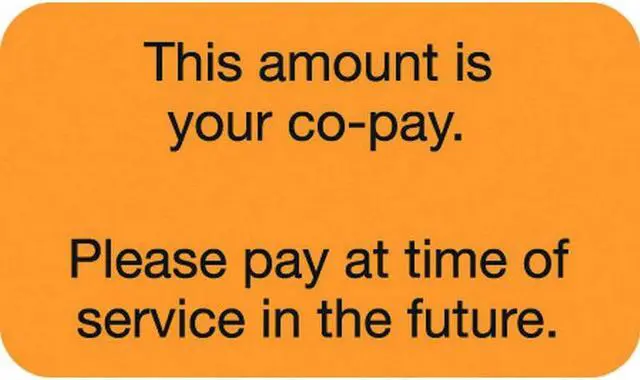 Insurance Labels, This amount is your co-pay., Fluorescent Orange, 1-1/2" W x 7/8" H (Roll of 250)