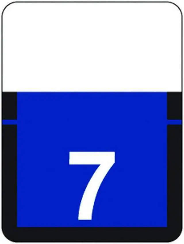 These Tab Compatible Numeric "7" Labels feature a wrap-around solid Purple bar with a White "7". These labels are compatible with Tab Products top tab filing systems. Label Size: 3/4" W x 1" H, Before Folding.