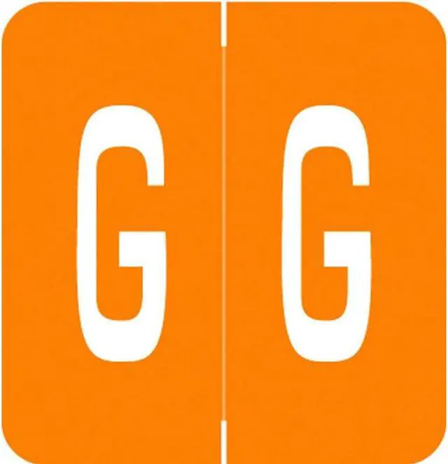 These VRE/GBS 8850 Series Compatible "G" Polylaminated stock labels with a White letter "G" on an Orange background. Label Size: 1.3" W x 1-1/4" H, Before Folding.