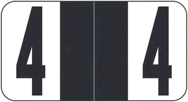 These Reynolds & Reynolds RRNM Compatible Numeric "4" Labels feature a White, and Black bar with a Black "4". Label Size: 1-5/8" W x 7/8" H, Before Folding. Laminated for protection