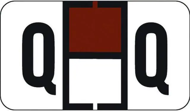 These Traco TRAM Series Compatible "Q" Polylaminated stock labels with a Black letter "Q" printed on a White, and Brown background. Label Size: 1-5/8" W x 15/16" H, Before Folding.