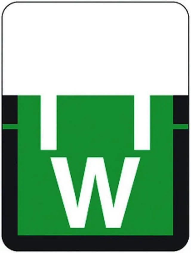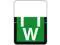 Tab A1307 Top Tab Compatible Labels, Vinyl Stock, White letter "W" on a Dark Green background.