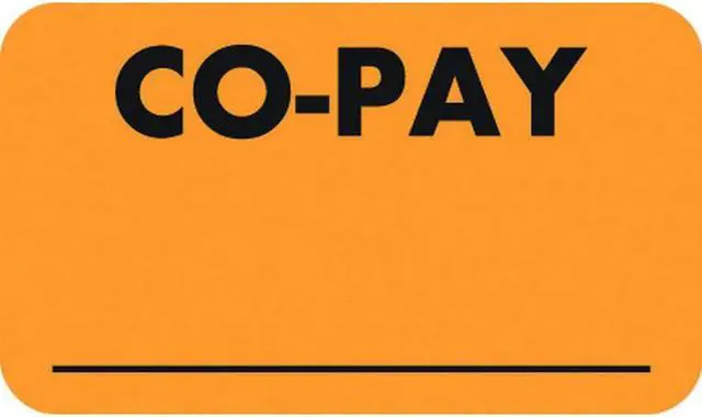 Insurance Labels, CO-PAY, Fluorescent Orange, 1-1/2" x 7/8" (Roll of 250)