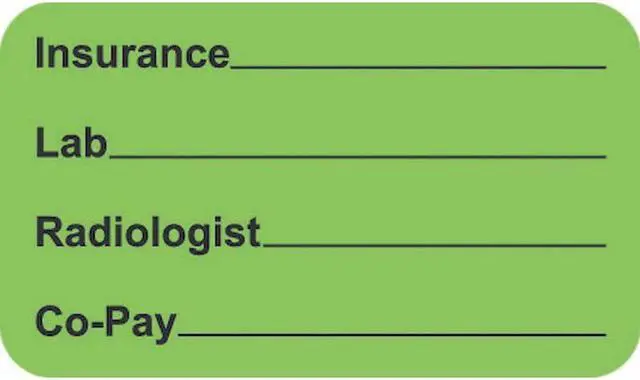 Insurance Labels, Insurance_Lab_Radiologist_Co-Pay_, Fluorescent Green, 1-1/2" W x 7/8" H (Roll of 250)