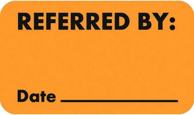 Insurance Labels, REFERRED BY: - Fl Orange, 1-1/2" X 7/8" (Roll of 250)