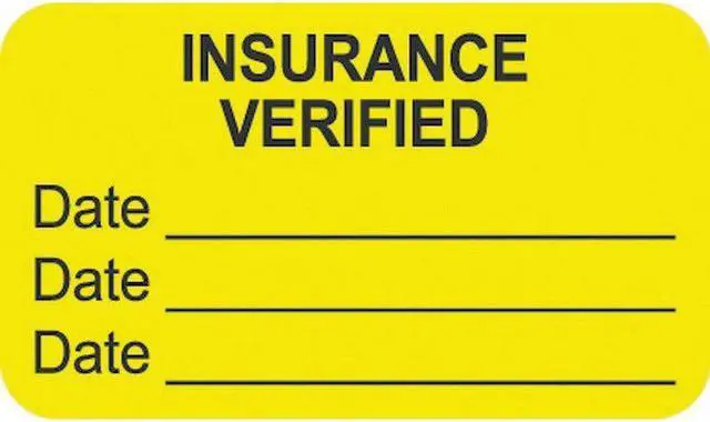 Insurance Labels, INSURANCE VERIFIED, Fluorescent Chartreuse, 1-1/2" W x 7/8" H (Roll of 250)