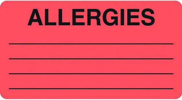 Allergy Warning Labels, ALLERGIES - Fl Red, 3-1/4" X 1-3/4" (Roll of 500)