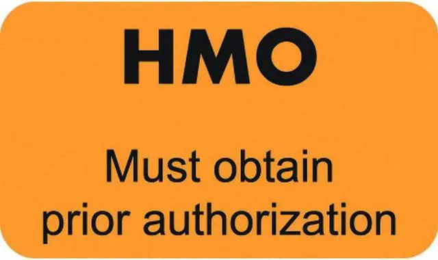 Insurance Labels, HMO Must obtain prior authorization - Fl Orange, 1-1/2" W X 7/8" H (Roll of 250)