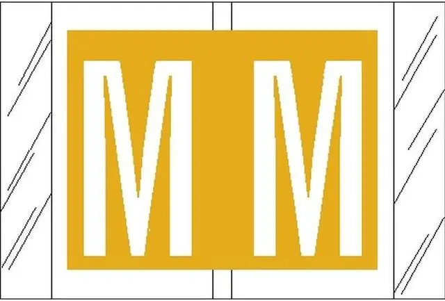 These Tabbies 12000 Compatible "M" Labels are the standard in alphabetic color coding systems. This system features a clear skirt edge and is laminated. The "M" labels contain a White "M" on a Light Yellow background.