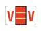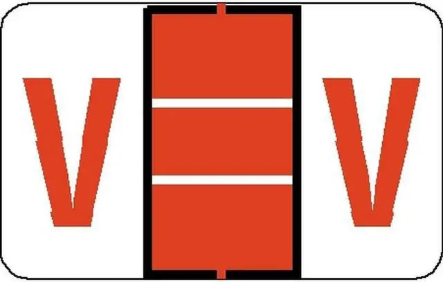 These Jeter 5100 Compatible "V" Labels feature a wrap-around Orange-colored bar with a two horizontal white lines and a Orange "V" printed on a white background. Label Size: 1 5/8" W x 15/16" H, Before Folding. Laminated for protection.
