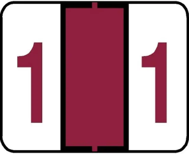 These Jeter 6100 Compatible Numeric "1" Labels feature a wrap-around solid Red bar and a matching Red "1" printed on a white background. Label Size: 1 5/8" W x 15/16" H, Before Folding. Laminated for protection.