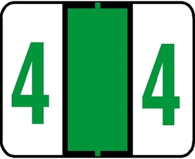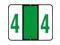 These Jeter 6100 Compatible Numeric "4" Labels feature a wrap-around solid Light Green bar and a matching Light Green "4" printed on a white background. Label Size: 1 5/8" W x 15/16" H, Before Folding. Laminated for protection.
