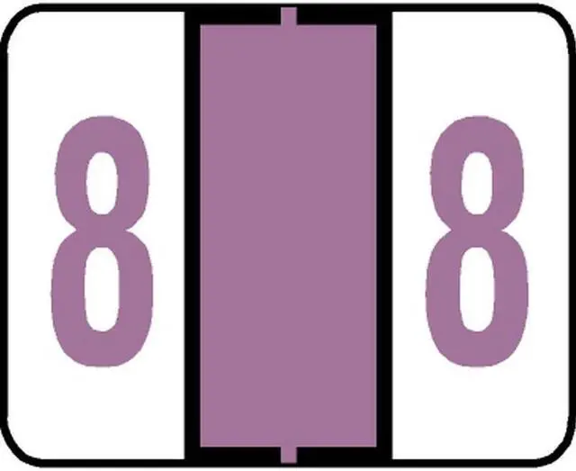 These Jeter 6100 Compatible Numeric "8" Labels feature a wrap-around solid Light Pink bar and a matching Light Pink "8" printed on a white background. Label Size: 1 5/8" W x 15/16" H, Before Folding. Laminated for protection.