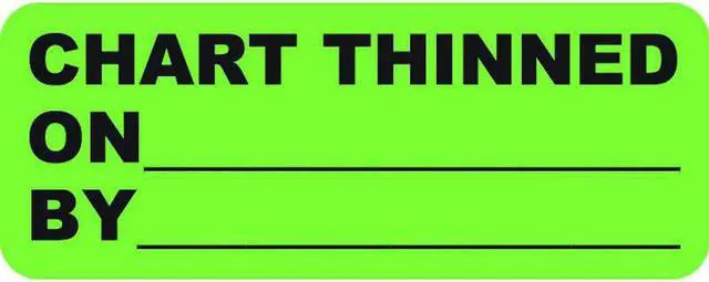 Chart Labels, CHART THINNED _ON_BY_ Labels, Fluorescent Green, 2-1/4" W x 7/8" H (Roll of 420)