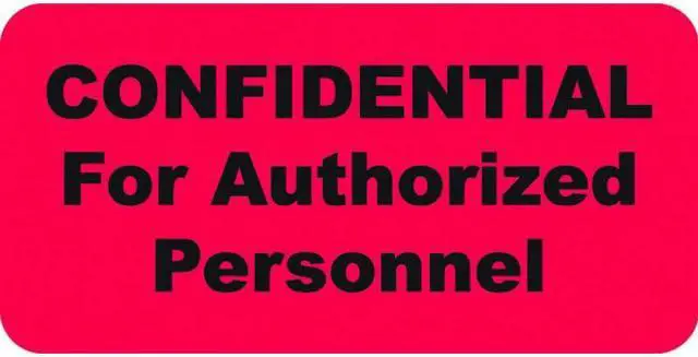 HIPAA Labels, CONFIDENTIAL For Authorized Personnel - Red 2" W X 1" H (Roll of 500)