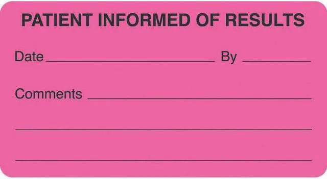 Chart Labels, PATIENT INFORMED OF RESULTS, Fluorescent Pink, 3-1/4" x 1-3/4", (Roll of 250)