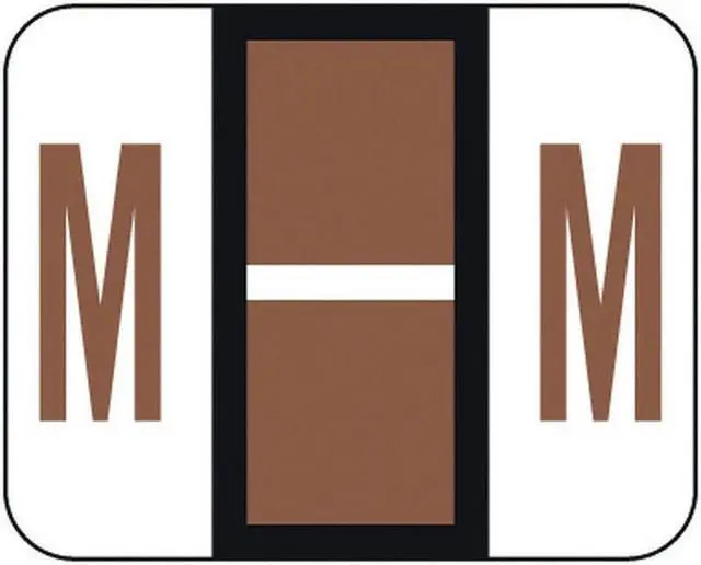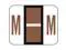 These File Doctor FDAV Series Compatible Letter "M" labels feature a wrap-around Black bar printed on a Brown, and White background. Vinyl Stock, Label Size: 1-1/4" W x 1" H, Before Folding.