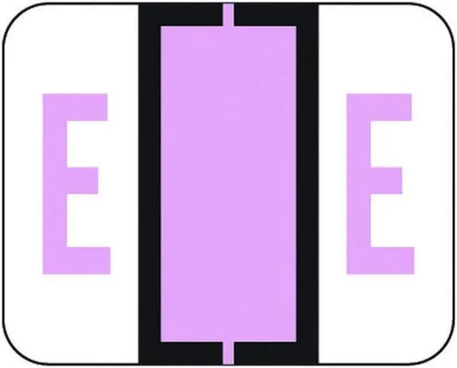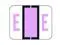 These File Doctor FDAV Series Compatible Letter "E" labels feature a wrap-around Black bar printed on a Lavender, and White background. Vinyl Stock, Label Size: 1-1/4" W x 1" H, Before Folding.