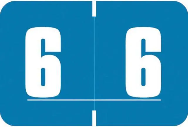 These Digi Color DXNM Compatible Numeric "6" Labels feature a wrap-around Blue color bar, and a White "6" numeric character. Label Size: 1-5/8" W x 15/16" H, Before Folding. Laminated for Protection