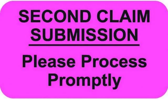 Insurance Labels, SECOND CLAIM SUBMISSION, Fluorescent Pink, 1-1/2" W x 7/8" H (Roll of 250)