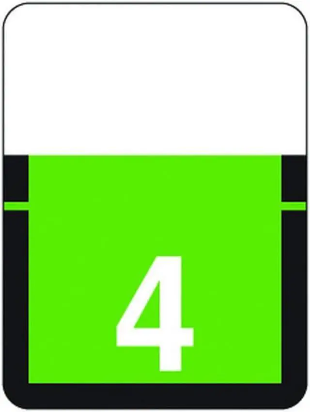 These Tab Compatible Numeric "4" Labels feature a wrap-around solid Light Green bar with a White "4". These labels are compatible with Tab Products top tab filing systems. Label Size: 3/4" W x 1" H, Before Folding.