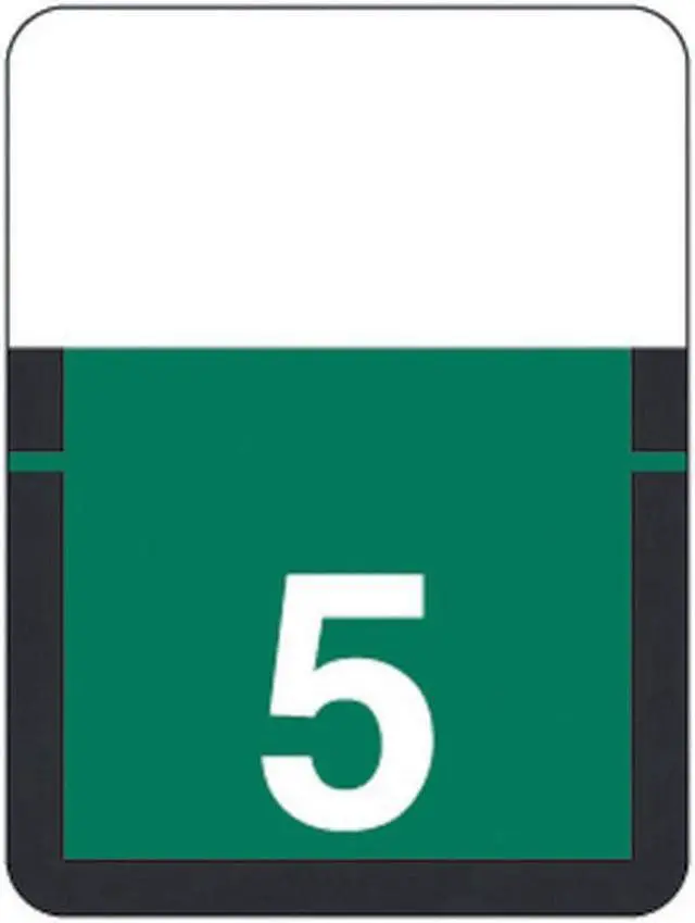 These Tab Compatible Numeric "5" Labels feature a wrap-around solid Dark Green bar with a White "5". These labels are compatible with Tab Products top tab filing systems. Label Size: 3/4" W x 1" H, Before Folding.