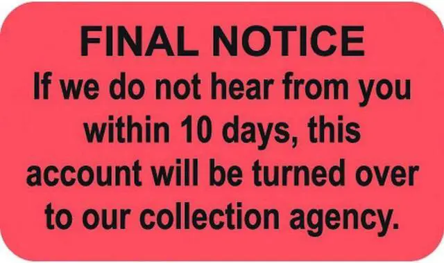 Billing Collection Labels, Fl Red - FINAL NOTICE, 1-1/2" W X 7/8" H (Roll of 250)