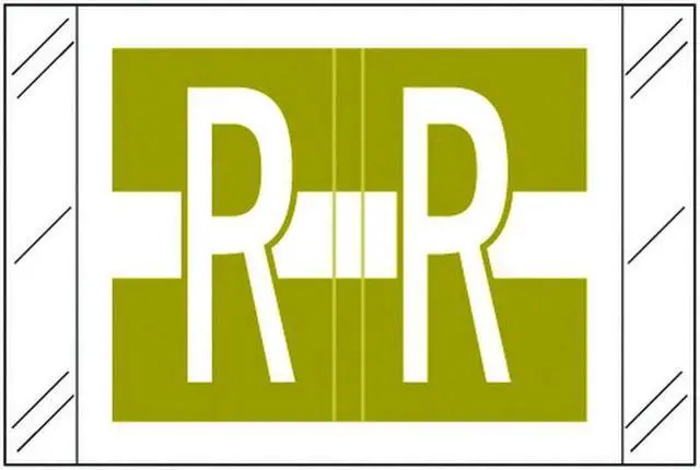 These Tabbies 12030 Series Compatible "R" 100# Polylaminated stock Labels with a White "R" printed on a Tan, and White background. Label Size: 1-1/2" W x 1" H, Before Folding.